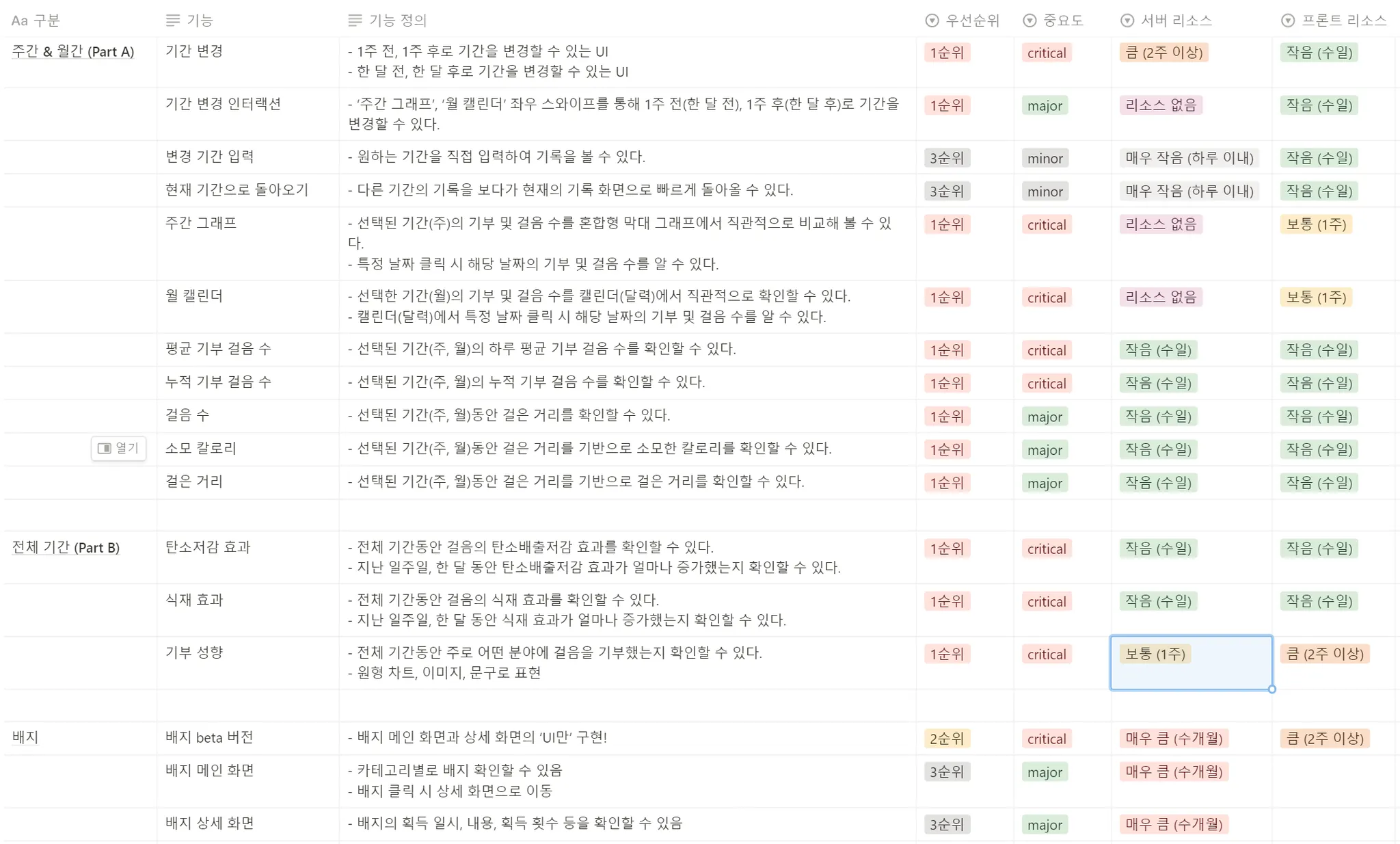 기능이 구현될 경우의 예상 임팩트와 개발자와 논의를 통해 도출된 개발 가능 여부 등 여러 요소를 고려하여 개발 우선순위를 설정하였습니다.