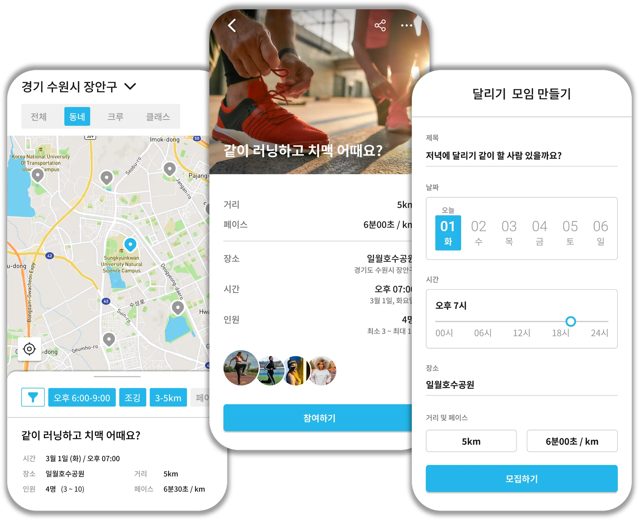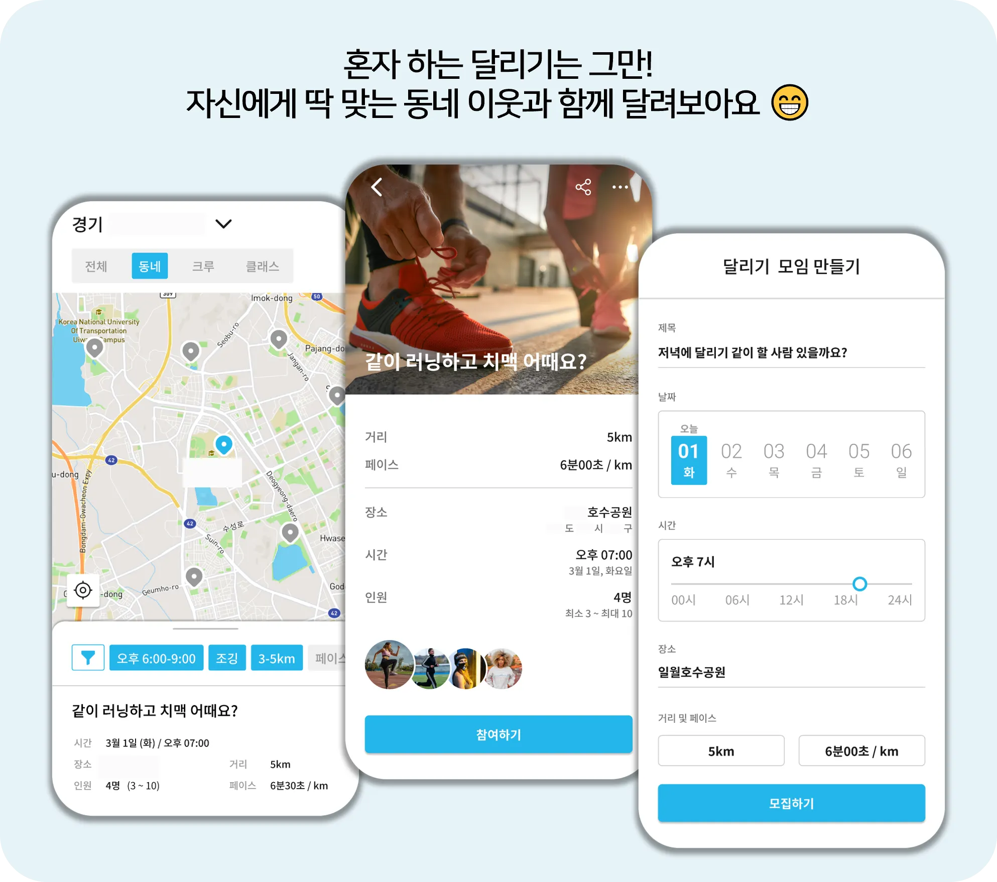 더 간편하고 부담감 없이 달리기 동반참여자를 찾을 수 있는 달리기 매칭 플랫폼